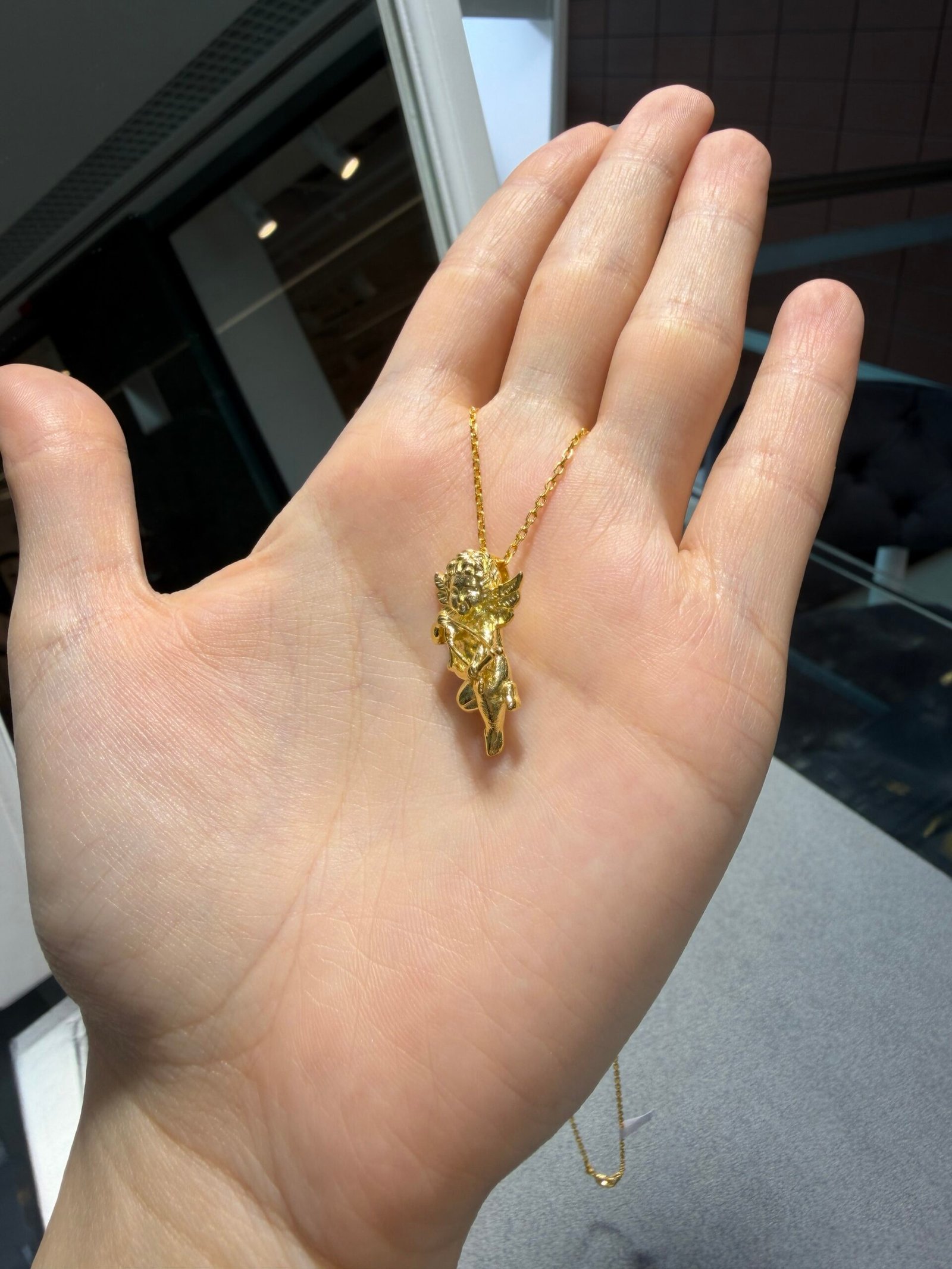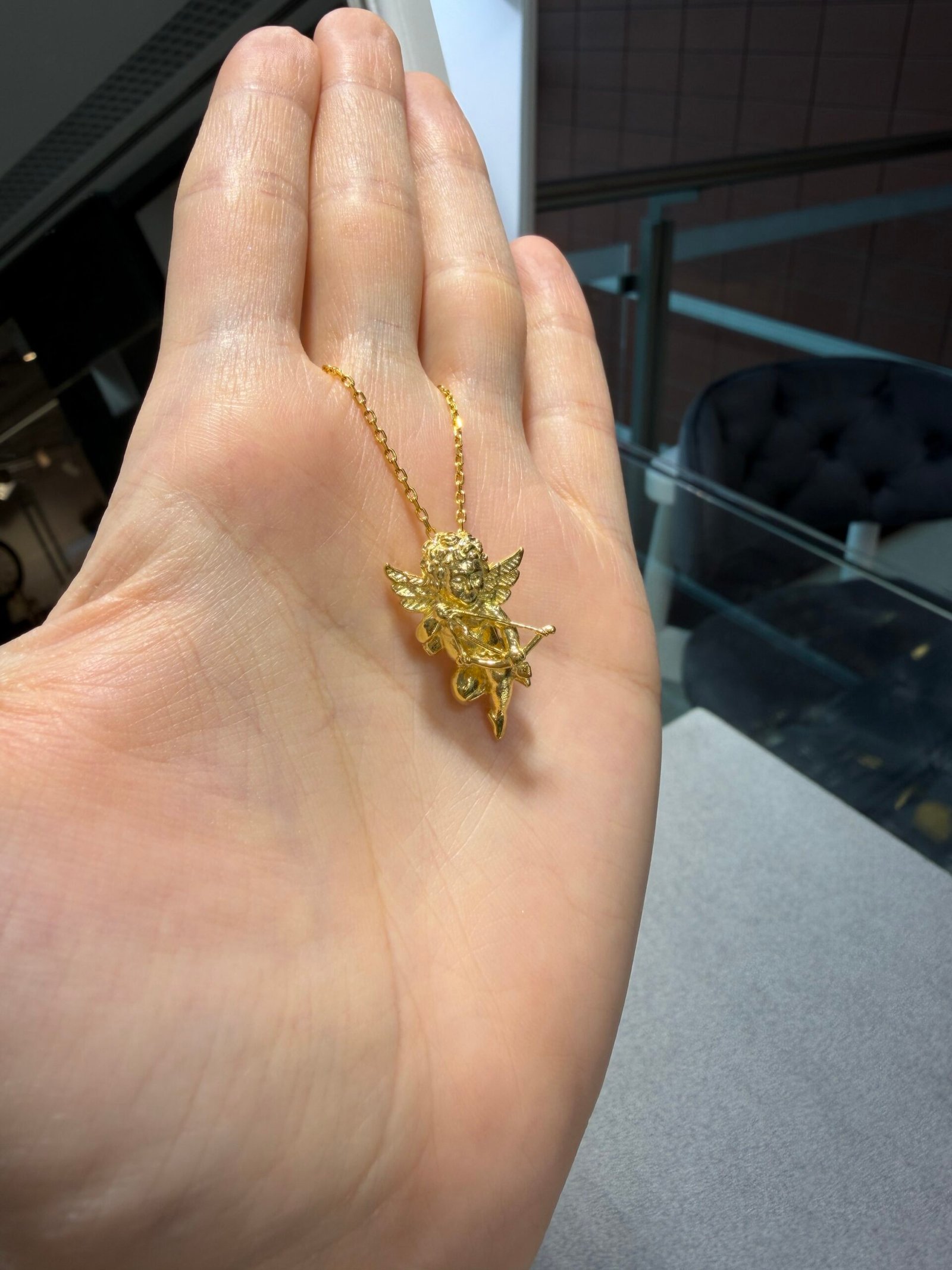 Altın Kaplama Gümüş Cupid Melek Kolye – Aşkın Sembolü Tasarım Model