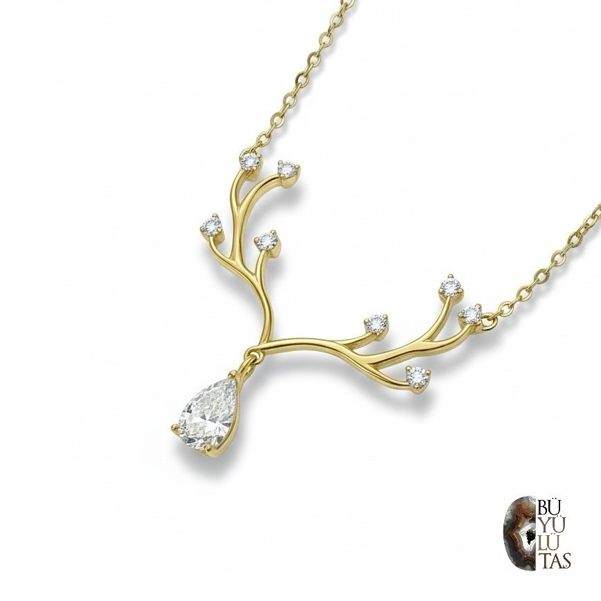 Bu altın kaplama gümüş zirkon taşlı geyik boynuzu kolye, tarzınıza zarif bir ışıltı katıyor. El işçiliğiyle özenle tasarlanan bu kolye, geyik boynuzunun sembolik güzelliğini modern bir şekilde yansıtıyor. Altın kaplamanın sıcak parlaklığı ve zirkon taşların ışıltısıyla, bu kolye her anınızda şık ve çekici bir aksesuar olacak. Özel günlerde veya günlük kullanımda stilinizi tamamlayacak bu kolye, göz alıcı bir görünüm sunar.