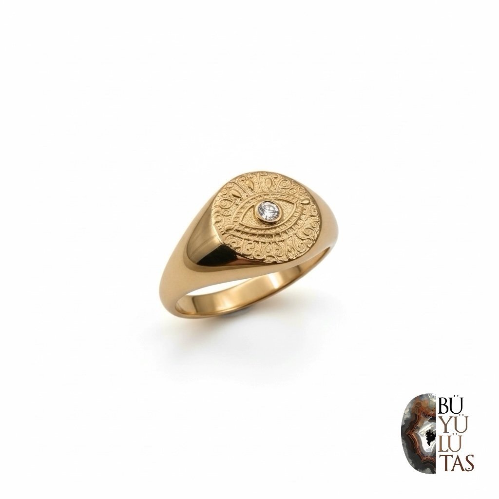 Antik Görünümlü Rose Gold Kaplama Gümüş Zirkon Taşlı Göz Yüzük