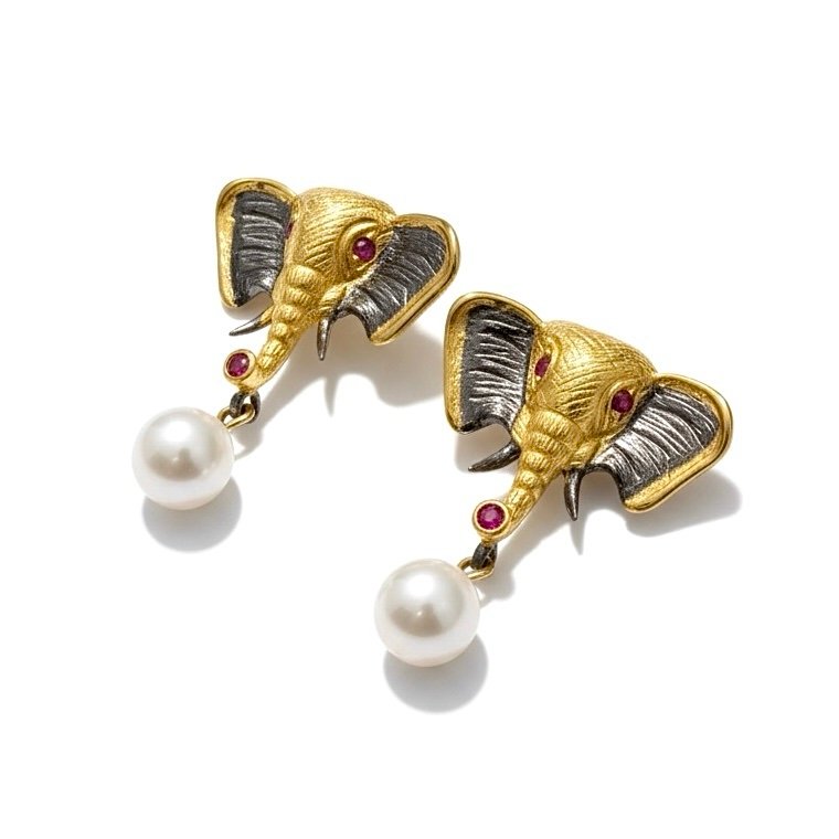 Gücü, bolluğu ve bilgelik enerjisini simgeleyen fil figüründen ilham alınarak tasarlanan bu özel küpe modeli, gerçek yakut taşlarının asaletiyle tamamlanmıştır. Fil figürünün göz ve detaylarında kullanılan doğal yakut taşları, tasarıma güçlü ve değerli bir vurgu katarken, alt kısımda yer alan inci sallantı küpeye zarif bir hareket kazandırır.