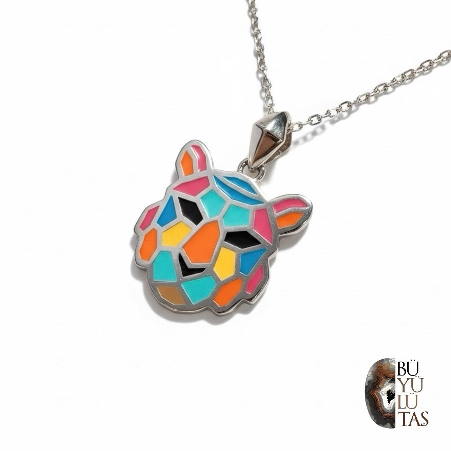 Canlı renklerden oluşan mozaik tasarımıyla dikkat çeken mineli kedi kolyemiz, tamamen özel el işçiliğiyle hazırlanmıştır. 925 ayar gümüş üzerine yapılan rodaj kaplama sayesinde parlaklığını uzun yıllar korur ve kararma yapmaz. Modern, enerjik ve eğlenceli tasarımıyla günlük kullanımda olduğu kadar hediye alternatifleri arasında da öne çıkan benzersiz bir modeldir.