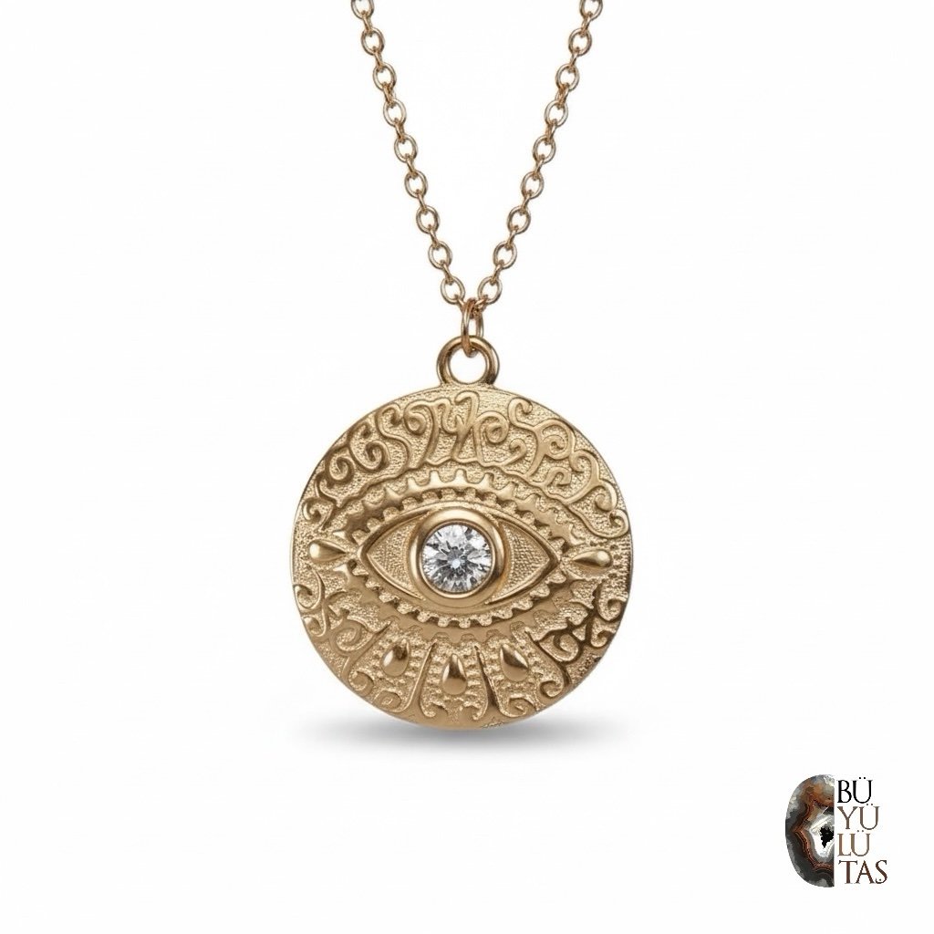 Antik Görünümün Büyüsü: Rose Gold Kaplama Zirkon Taşlı Göz Gümüş Kolye