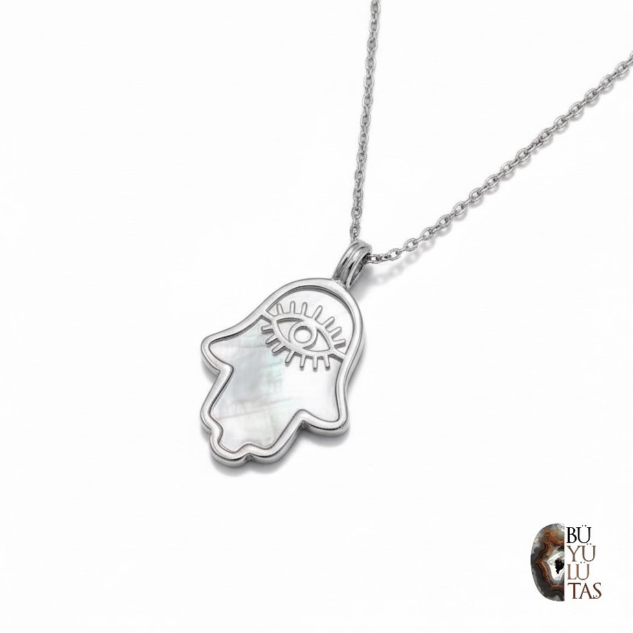Sedefli gümüş fatma ana eli göz kolye