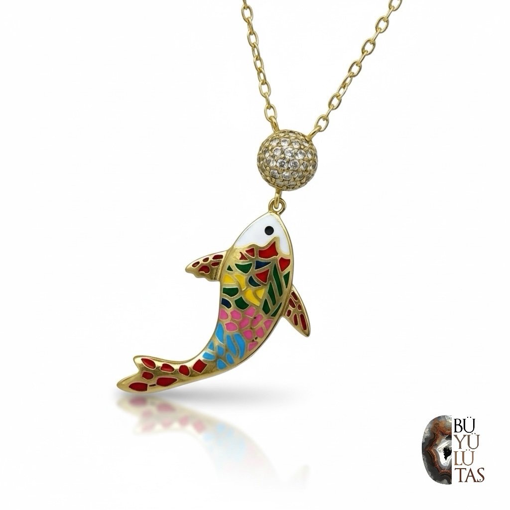Rose gold kaplama gümüş zirkon taşlı mineli koi balığı kolye